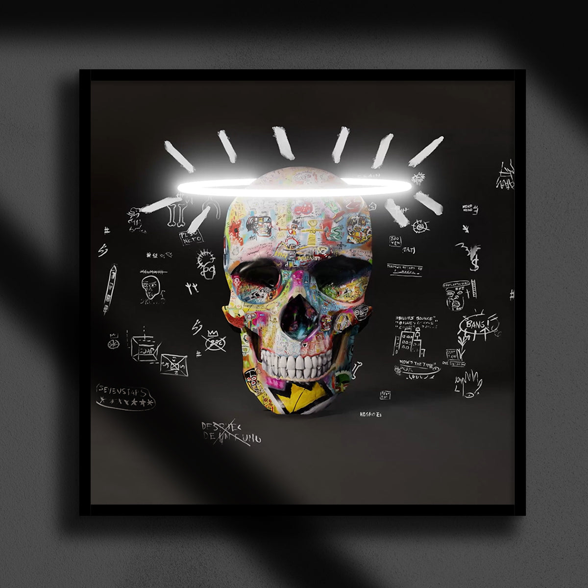 Skull Basquiat Tribute 3D White Art Print
